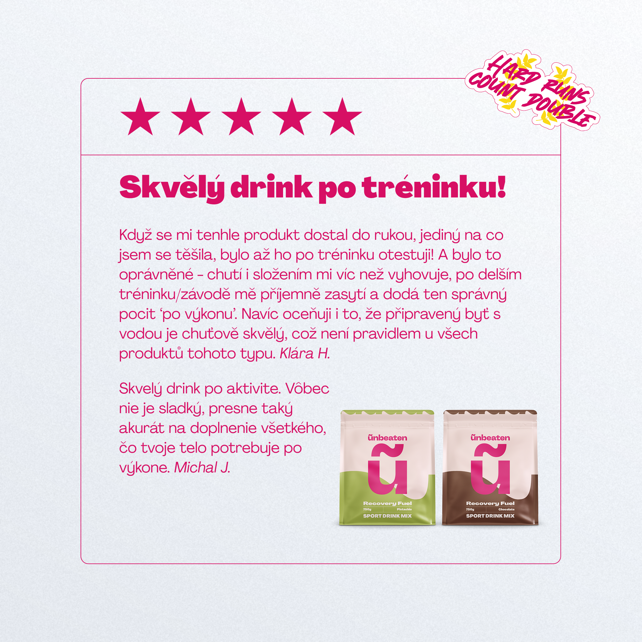 ũnbeaten Recovery Fuel máme v dvoch super príchutiach - pistácia a čokoláda.